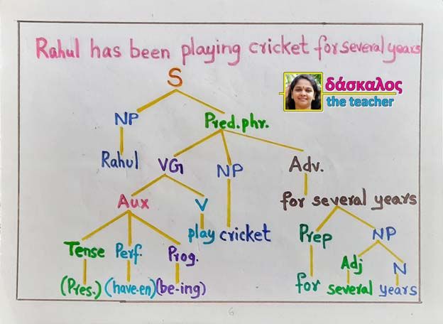 A single sentence comprises an NP (subject) and a predicate phrase. Apart from a compulsory verbal group, this predicate phrase may optionally have one or more noun phrase(s), preposition phrase(s), adverbials and adjective phrases.