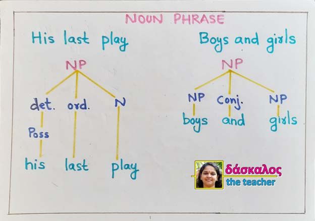 A noun phrase has a noun( a headword) and certain modifiers. Generally, a noun in a noun phrase(optionally) has the following modifiers appearing before it in the given order: