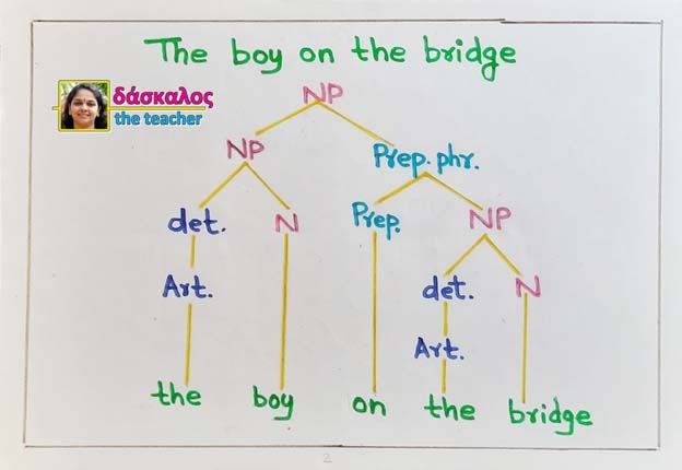 A prepositional phrase is a Noun phrase preceded by a preposition. Sometimes, a noun phrase contains a Preposition phrase embedded in it. In such cases, the Noun phrase can be broken into NP and preposition phrase. Both can then be further split up.