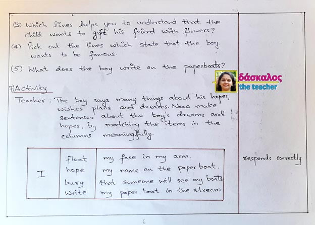 A general comprehension of the poem’s theme enables the pupil to enjoy it. During the detailed study, the questions that help the student understand and appreciate the poem’s central idea must be asked. The figures of speech, rhyme, metre, symbols, title and every other aspect of a poem must be dealt with, as they give colour and life to the poem and enable proper appreciation.
