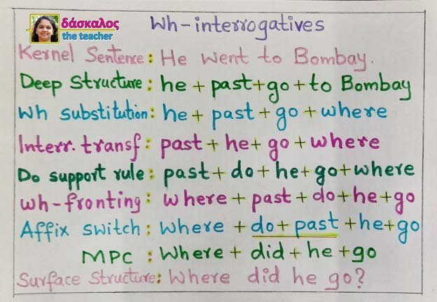 These are interrogatives with a question word like who, what, when etc. In this, the auxiliary is shifted to the front of the subject NP. In addition to that, there is also a wh- substitution. The appropriate wh-word is introduced and shifted to the front by w.h- fronting.
